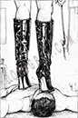 Это разновидность садомазо-развлечений, при которой проститутка топчет ногами раба. В процессе сексуальной игры раб целует, лижет ножки Госпожи, обтянутые высокими черными лакированными сапожками на острых длинных каблуках-шпильках. Она Госпожа наступает каблуком, всей подошвой на гениталии раба, на его лицо и на ложбинку в центре груди. Во время одного сеанса опытная Госпожа может сменить не одну пару обуви. Жесткость и красоту подобной сексуальной практики может оценить только настоящий гурман-мазохист. В процессе трамплина у этих людей наблюдается бешеная эрекция, которая заканчивается мощным оргазмом с сильнейшим семяизвержением.